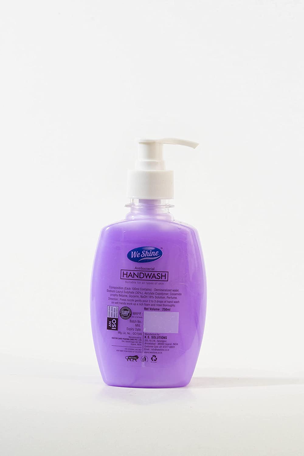 We Shine Antibacterial Germ Protection Hand Wash Liquid Soap Pump | Natural Liquid Handwash, Dispenser Bottle With Refreshing Fragrance (250 ML) (Purple)