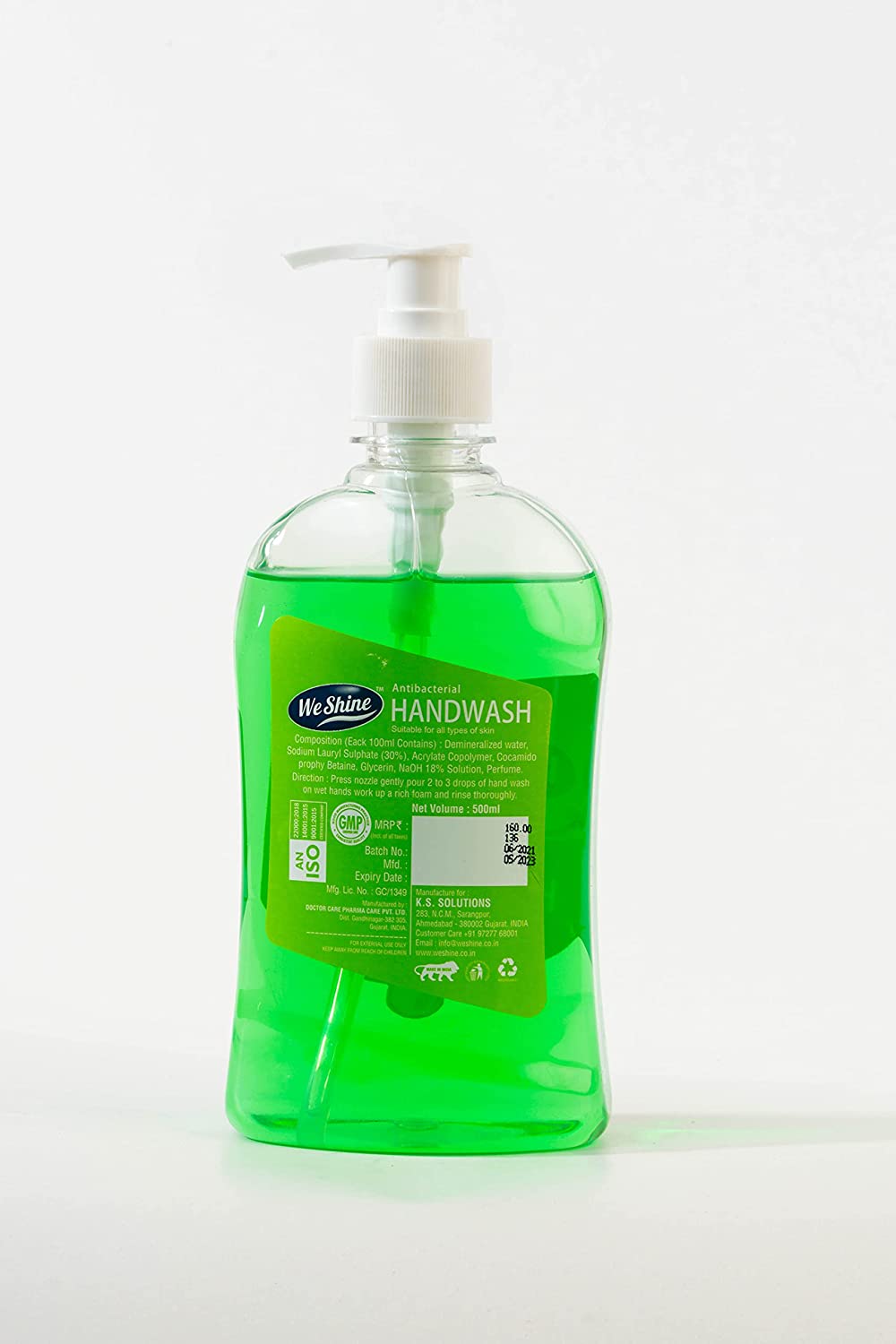 We Shine Germ Protection Hand Wash Liquid Soap Pump | Natural Liquid Handwash, Dispenser Bottle With Refreshing Fragrance (500 ML) (Green)