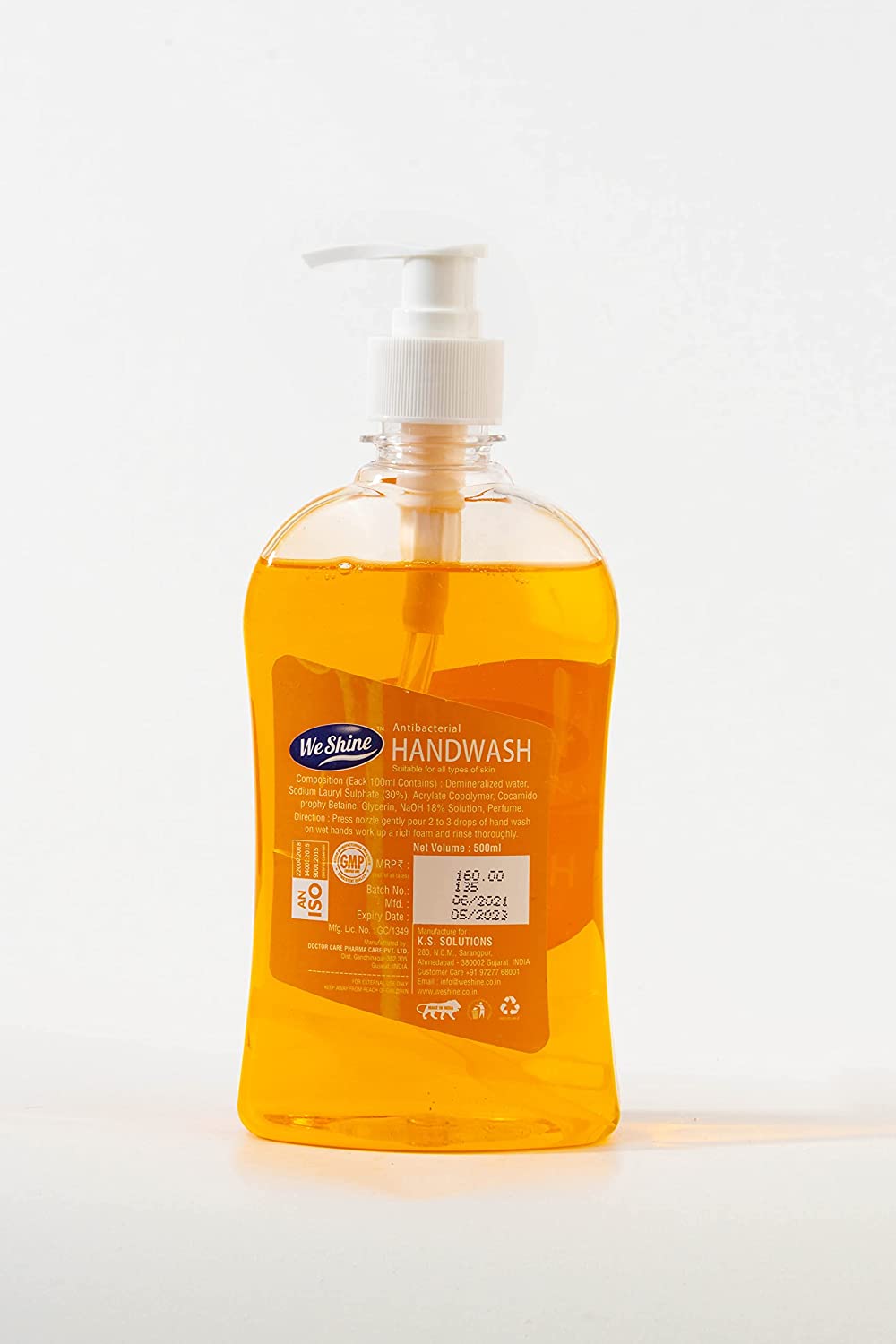 We Shine Germ Protection Hand Wash Liquid Soap Pump | Natural Liquid Handwash, Dispenser Bottle With Refreshing Fragrance (500 ML) (Orange)
